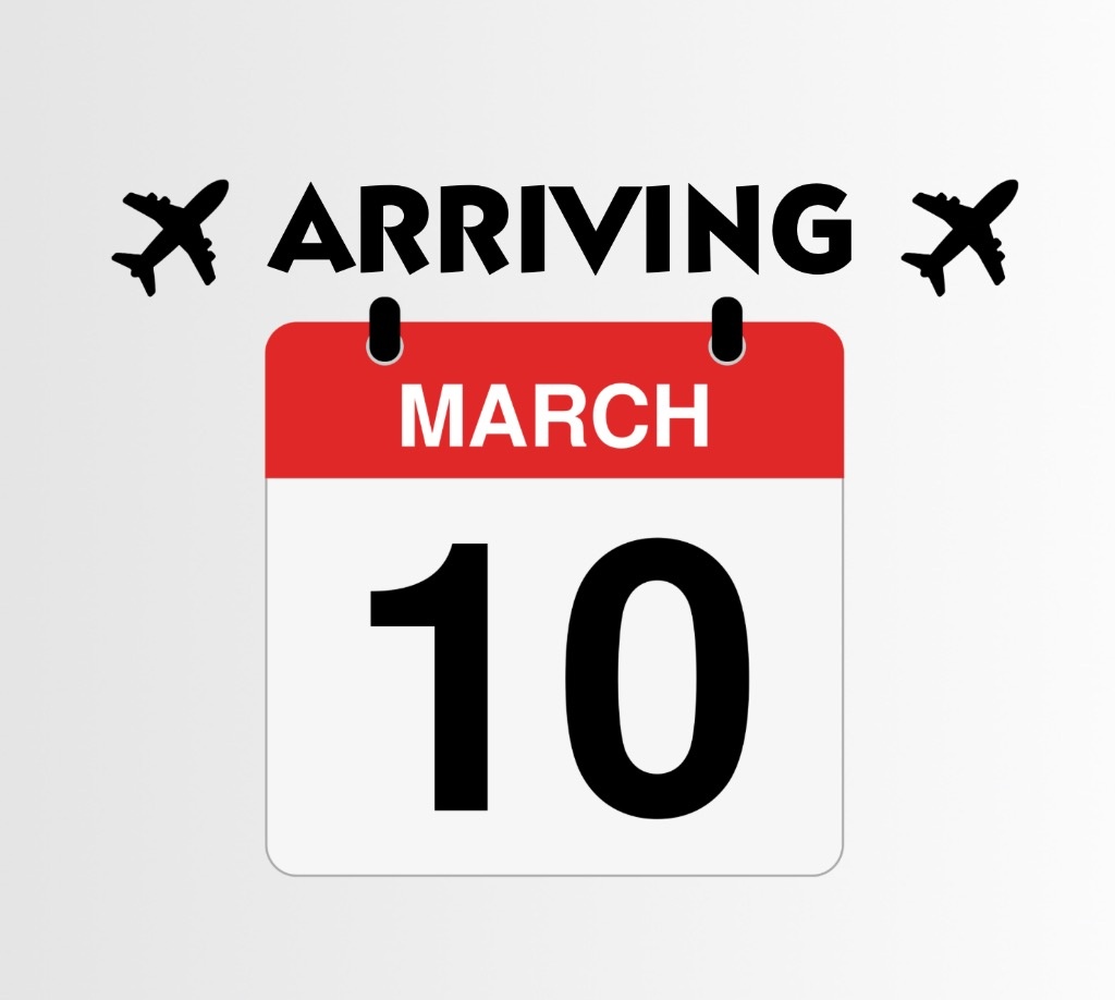 > arriving march 10th